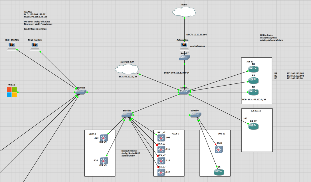 | 192.168.122.104 | NX1_v7 | admin | feature tacacs+ | #Nothing to do | nxos |